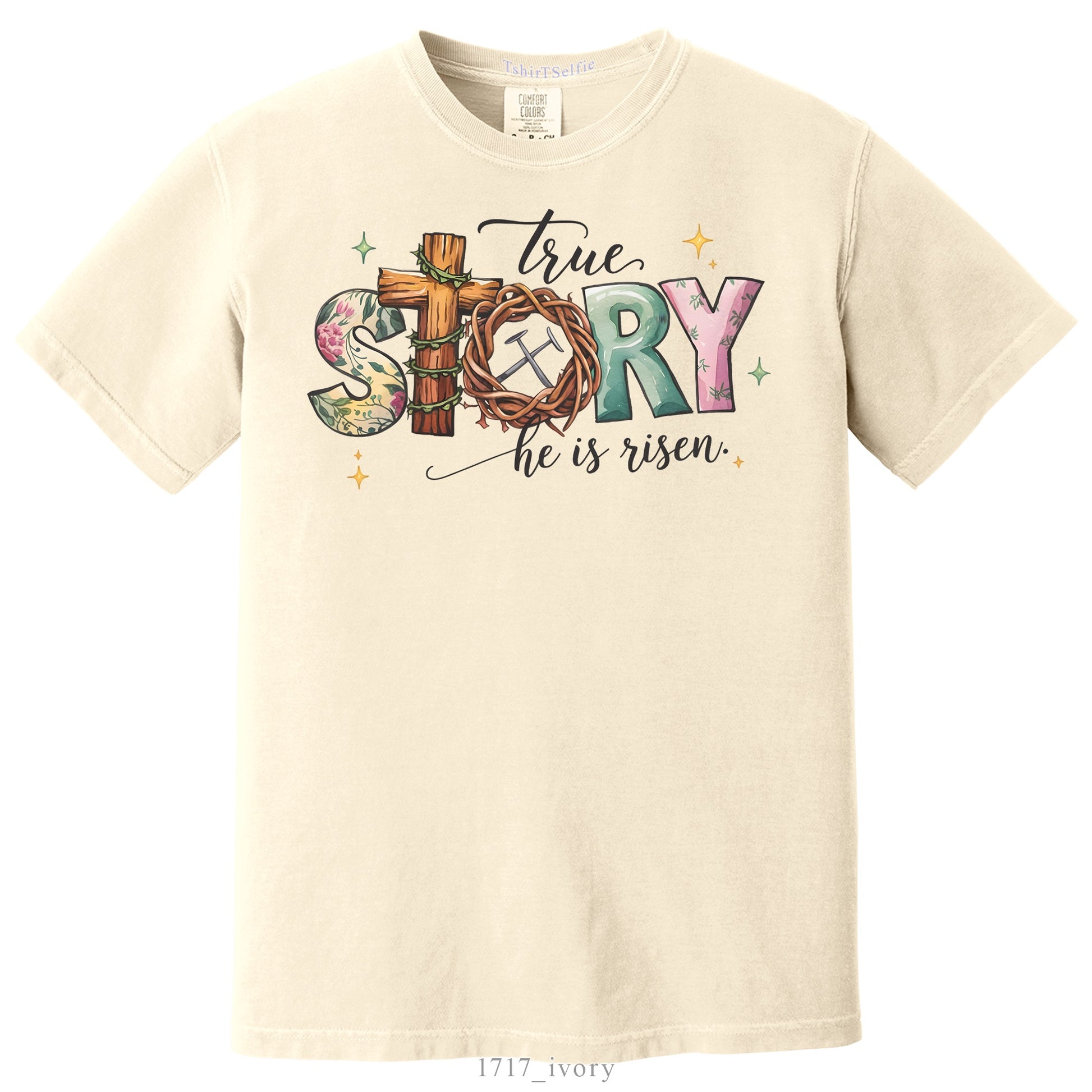 Celebrate the profound meaning and sacred spirit of Easter with this artistic designer t-shirt! ✨ Featuring the powerful message "True Story - He Is Risen," this design beautifully intertwines iconic symbols like the cross, the crown of thorns, and nails with delicate spring floral patterns. Using high-definition DTF digital printing technology, the intricate textures inside the letters and soft color gradients are transferred to the fabric with stunning clarity. 🙏 Both meaningful and stylish, this printed tee is a perfect choice for church services, family gatherings, or any moment you wish to share your faith. With its premium fabric and breathable print, it offers a peaceful and comfortable wearing experience all day long. ✝️🌸