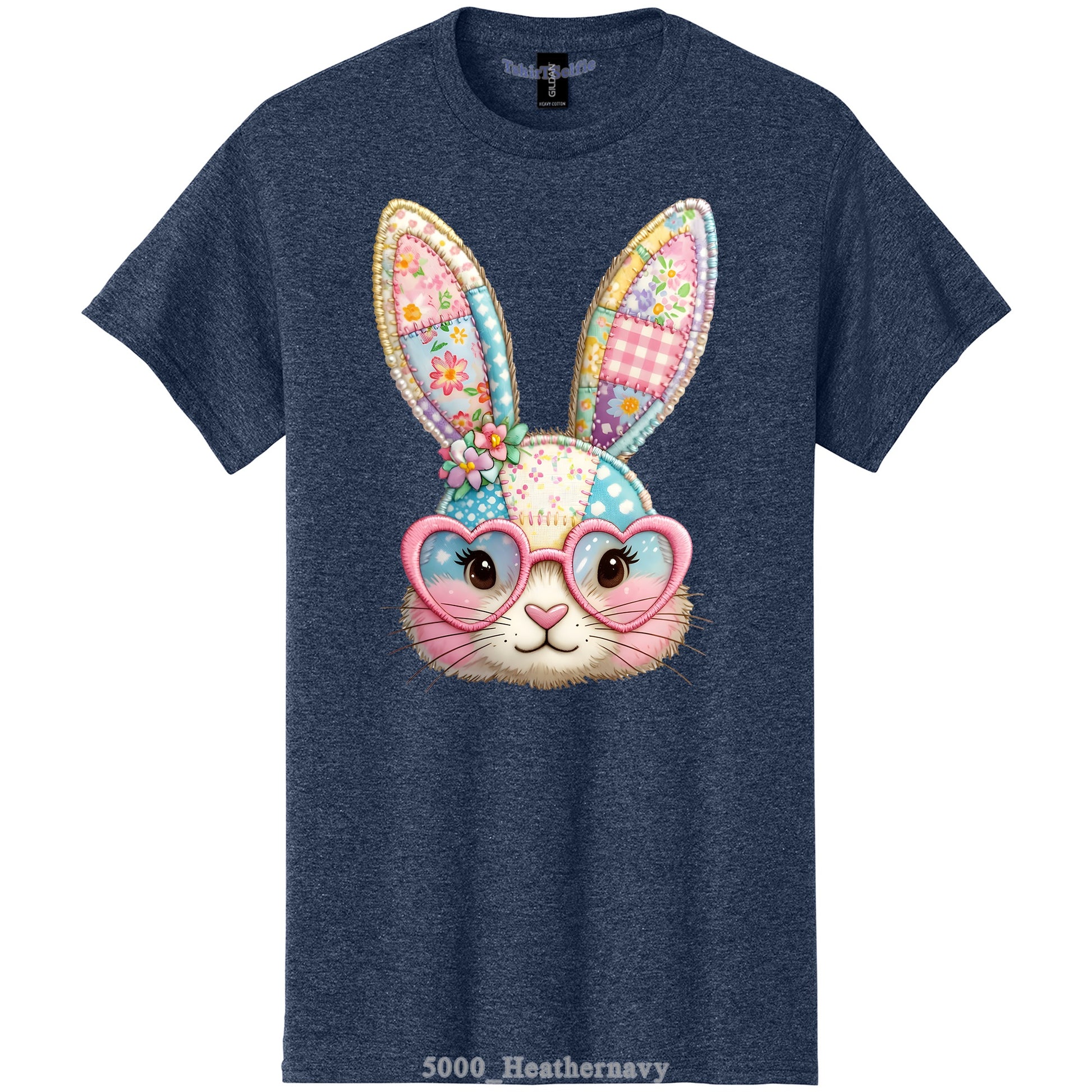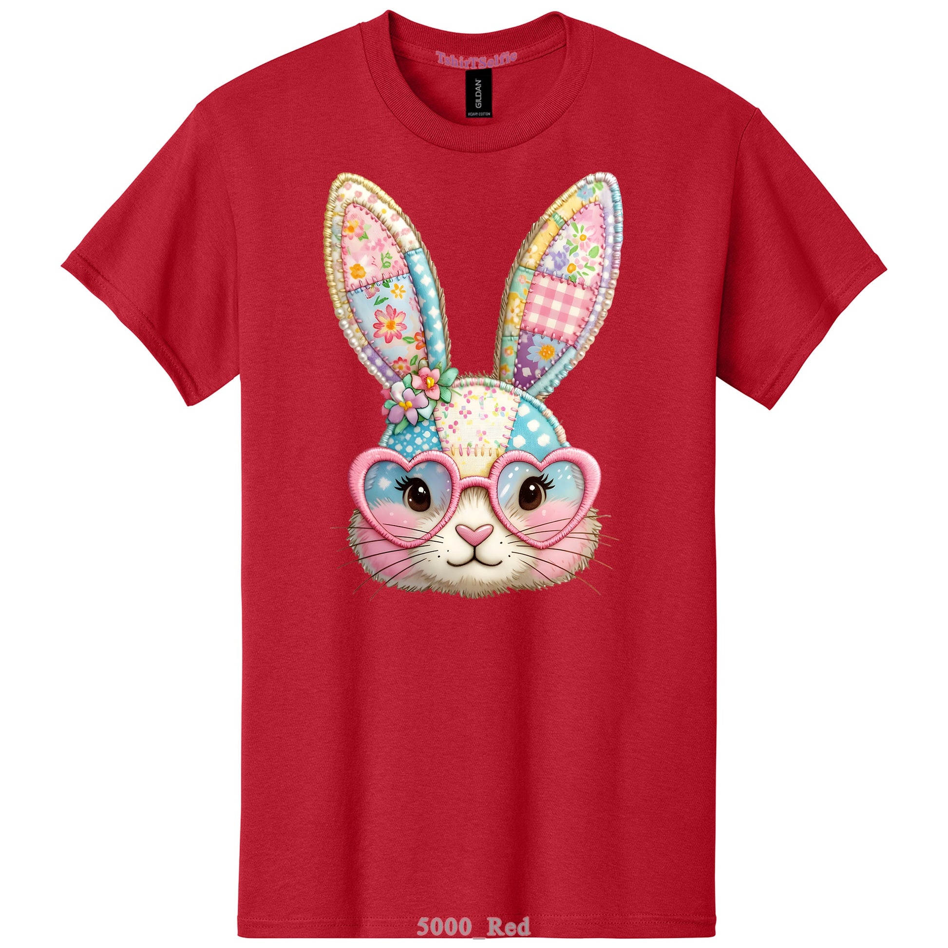 Tags: #EasterBunnyShirt #PatchworkBunny #HeartGlassesTee #EasterGift #SpringFashion #DTFPrinting #CuteGraphicTee #EasterOutfit #HolidayApparel #BunnyLoverGift