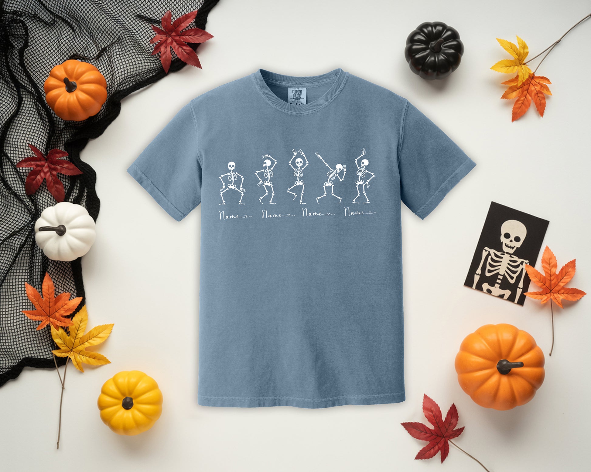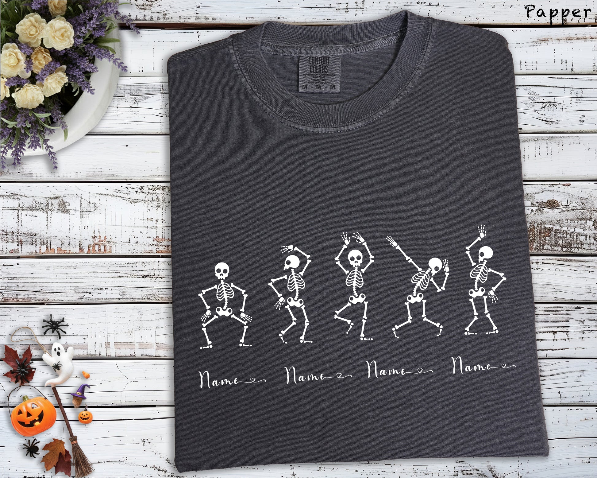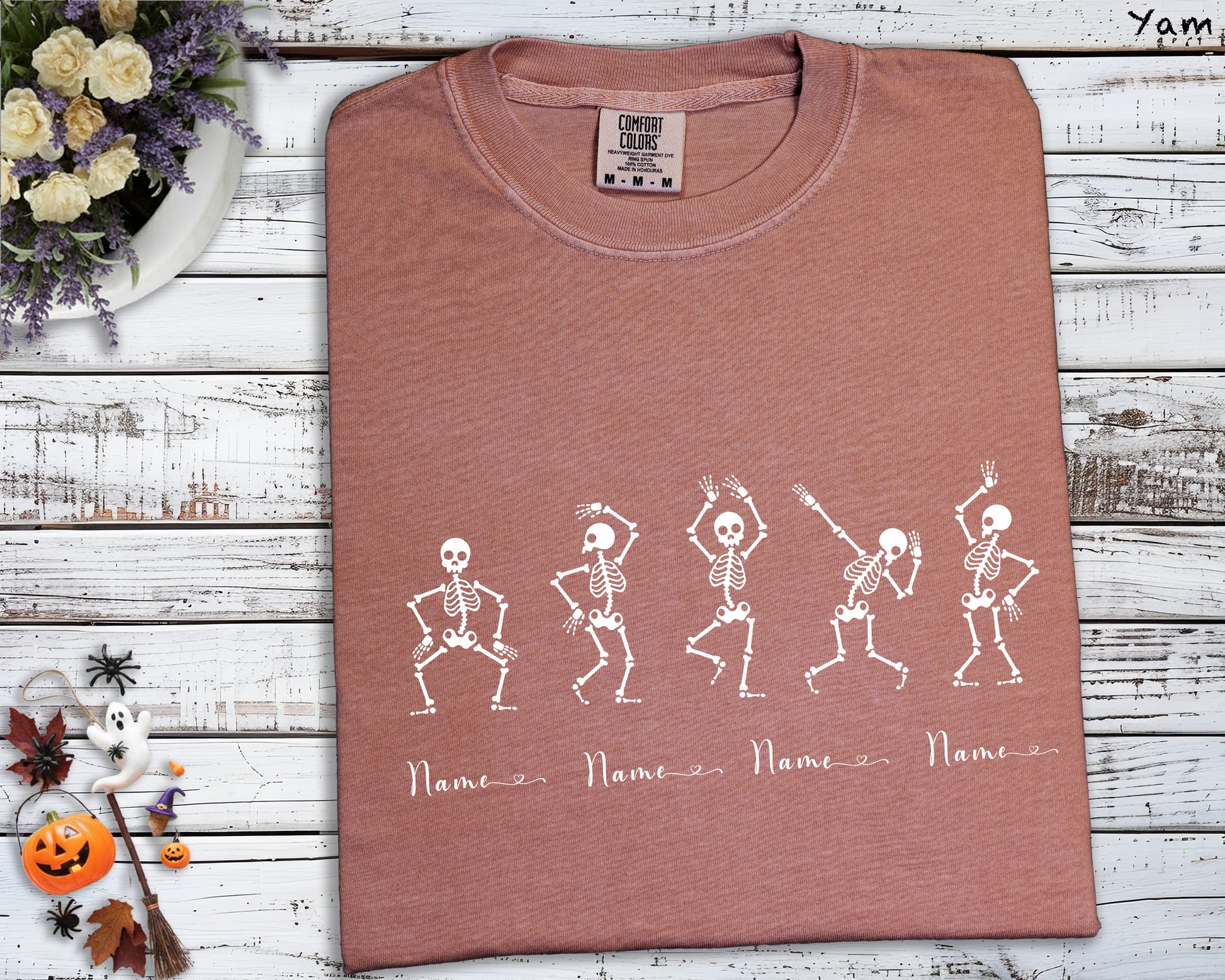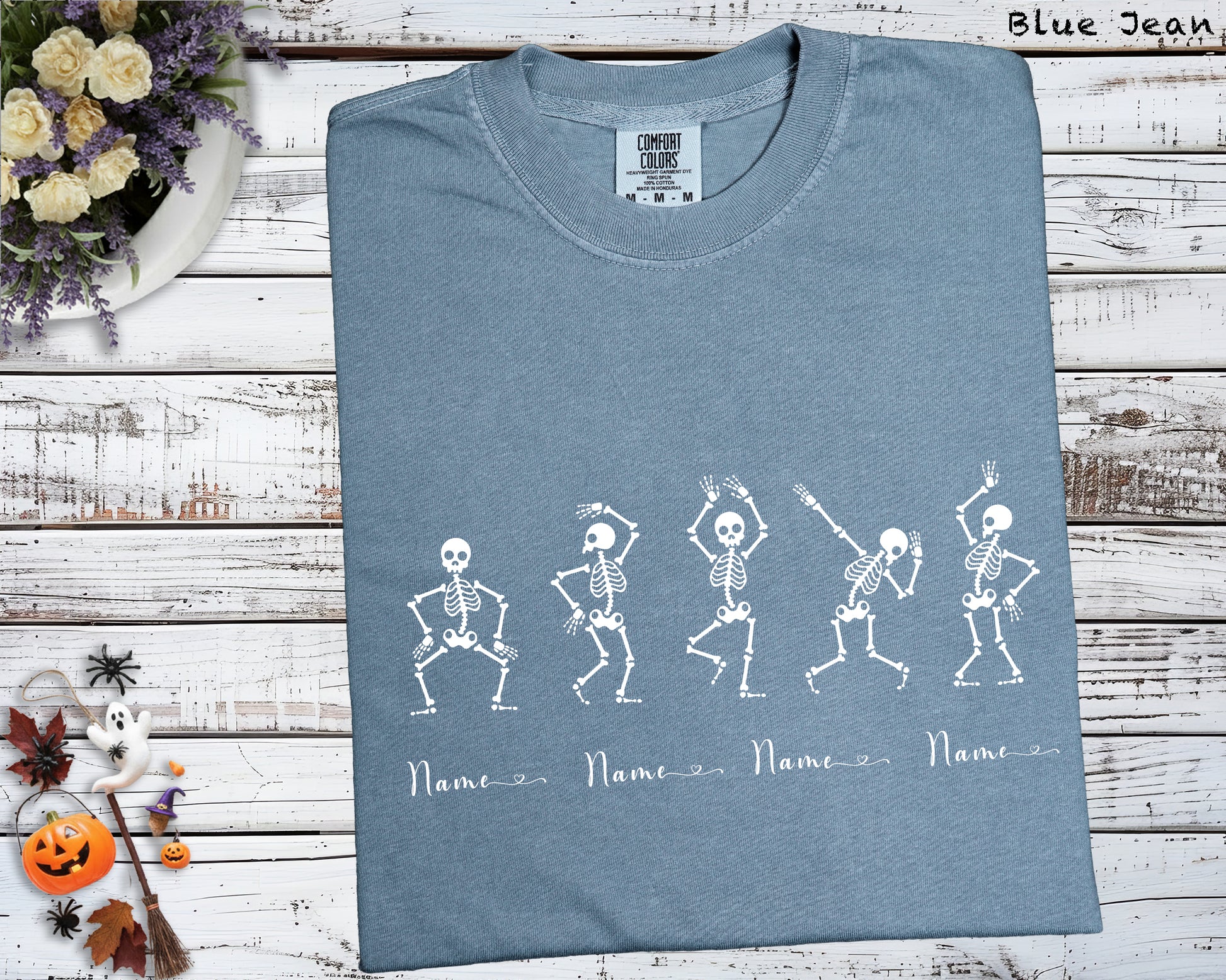 Personalized Comfort Colors Skeleton Dance T-Shirt | Custom Name Halloween Crewneck